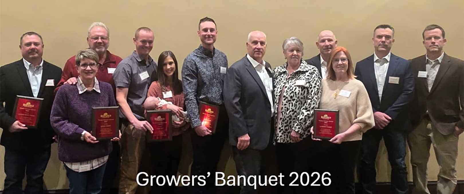 ELWOOD, Ind. (Feb 9, 2026) – Red Gold of Elwood, Indiana honored six growers with the Red Gold Master Grower Award at Red Gold’s 35th Annual Grower’s Banquet. All the Master Growers were awarded with a Red Gold plaque. The Master Growers were AcMoody Farms of Union City, Michigan receiving their 11th Master Grower Award, Knick Farms of Ansonia, Ohio Receiving their 14th Master Grower Award, Iott Farms of Deerfield, Michigan receiving their 3rd Master Grower Award, Niese Ag of Pandora, Ohio receiving their 6th Master Grower Award, Lievens Bros. Farms from Petersburg, Michigan receiving their 6th Master Grower Award and Howell Farms of Middletown, Indiana receiving their 6th Master Grower Award. The Master Grower Award is given away each year to recipients who have distinguished themselves from others by delivering quality production, while exhibiting industry leadership and professionalism. All growers for Red Gold had training in good production practices, employee safety and human resources.