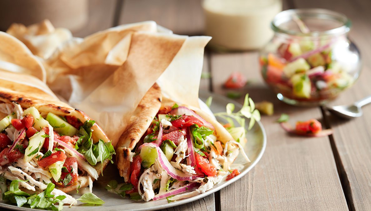Enjoy Mediterranean flair with this gyro recipe, pairing juicy chicken and a refreshing cucumber tomato salsa in warm pita bread.