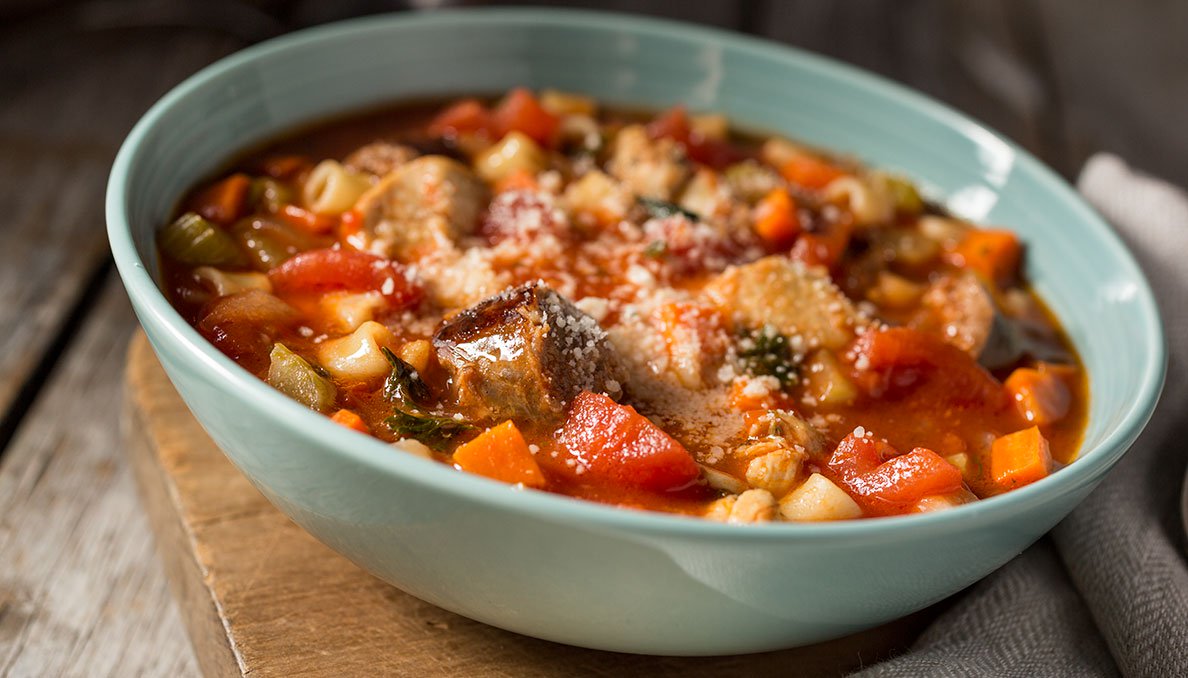 Warm and rustic, this stew combines chicken, sausage, and Red Gold tomatoes for a satisfying, slow-simmered meal.