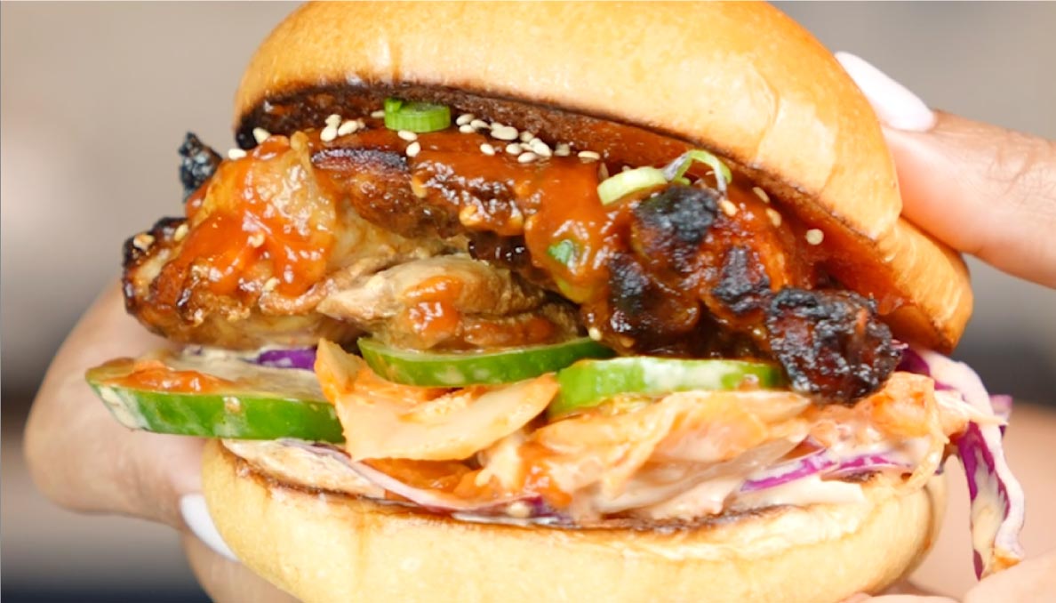 Bold Korean BBQ flavors and a spicy sriracha ketchup make this chicken burger unforgettable.