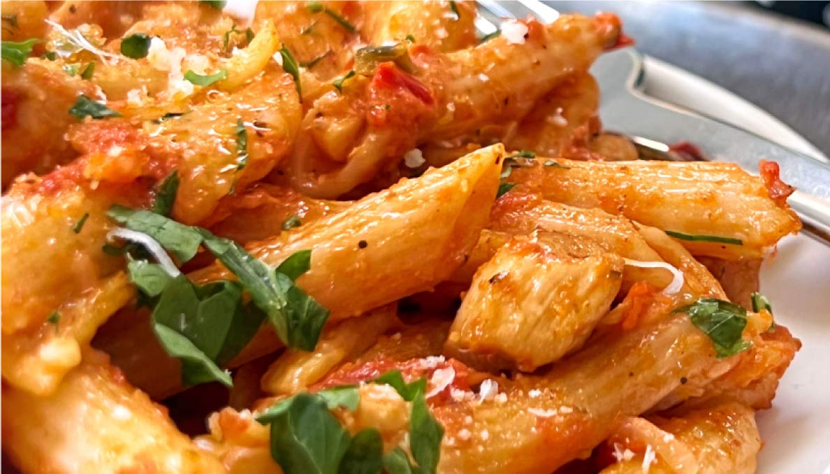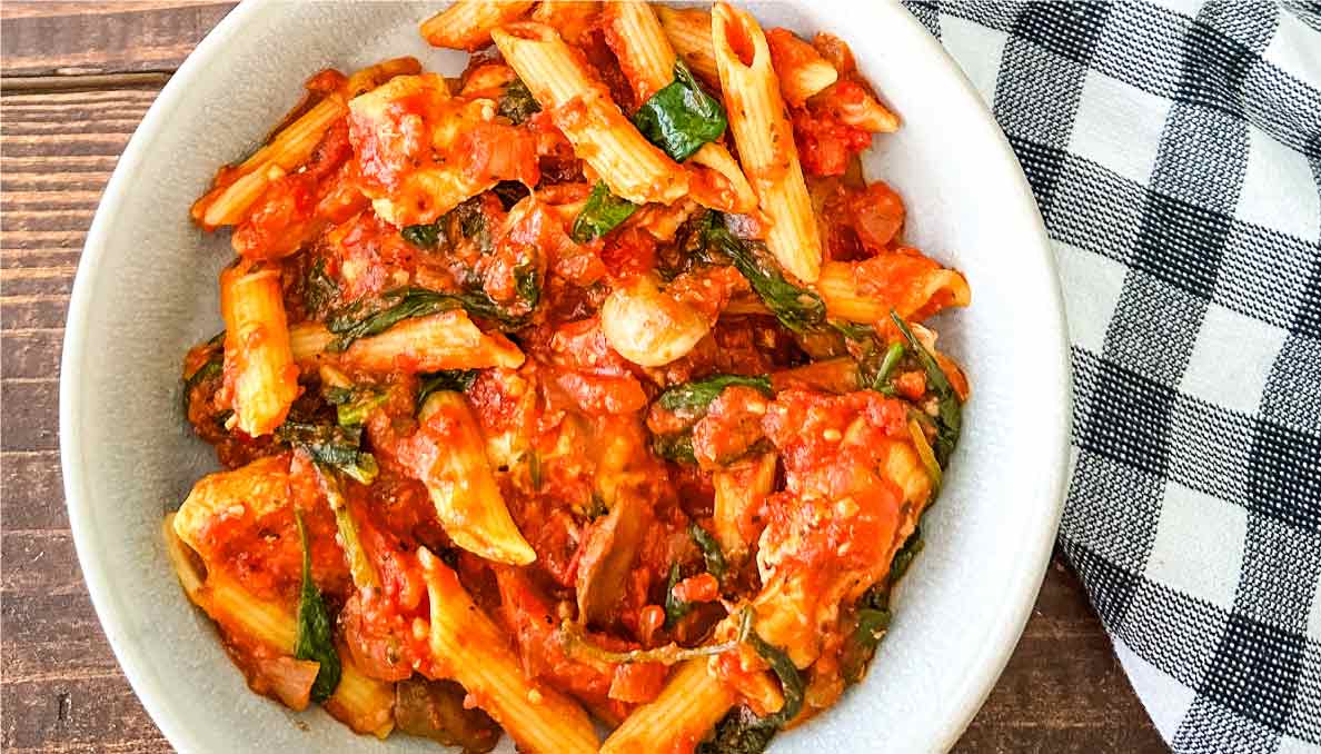 This simple and comforting pasta combines tender chicken and rich tomato sauce for an easy weeknight dinner.