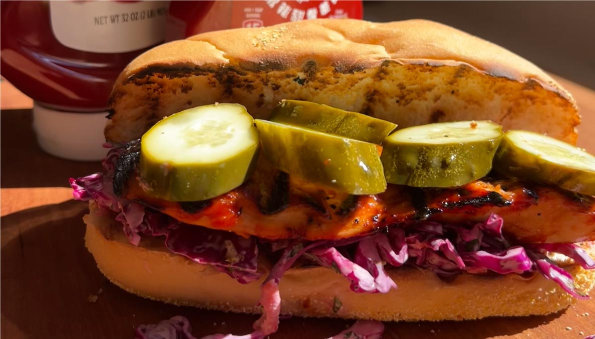 A juicy grilled chicken breast paired with tomato and fresh toppings on a toasted bun makes this sandwich a summertime classic.
