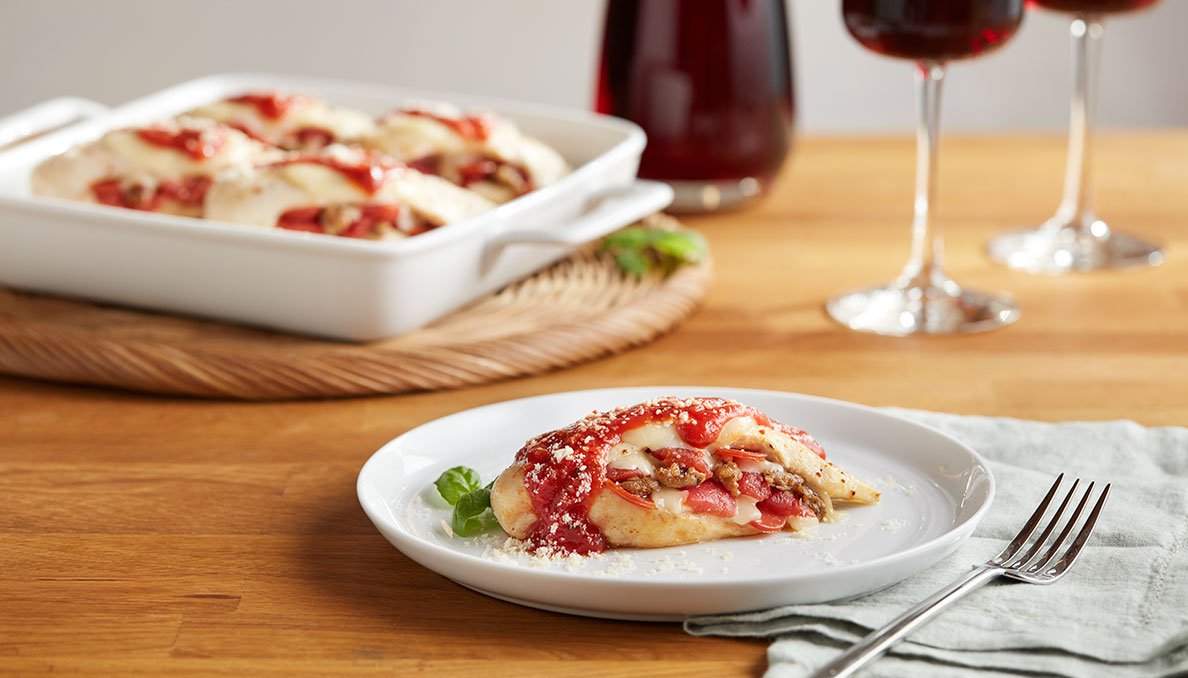 This fun dish stuffs chicken breasts with pepperoni, cheese, and tomato sauce—perfect for pizza lovers!