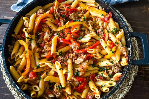 If you are a pasta lover, this Sausage and Peppers Pasta is a must-try! This meal is filled with cozy pasta, savory sausage, and sweet bell peppers. The whole family will enjoy! @ahalfbakedmom @thefeedfeed