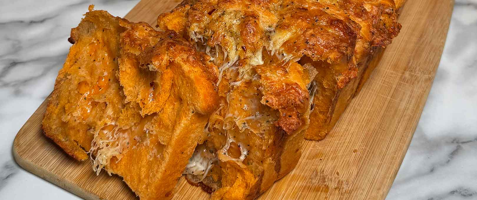 In a small bowl, combine melted butter, parmesan, mozzarella, Italian seasoning, and red pepper flakes.