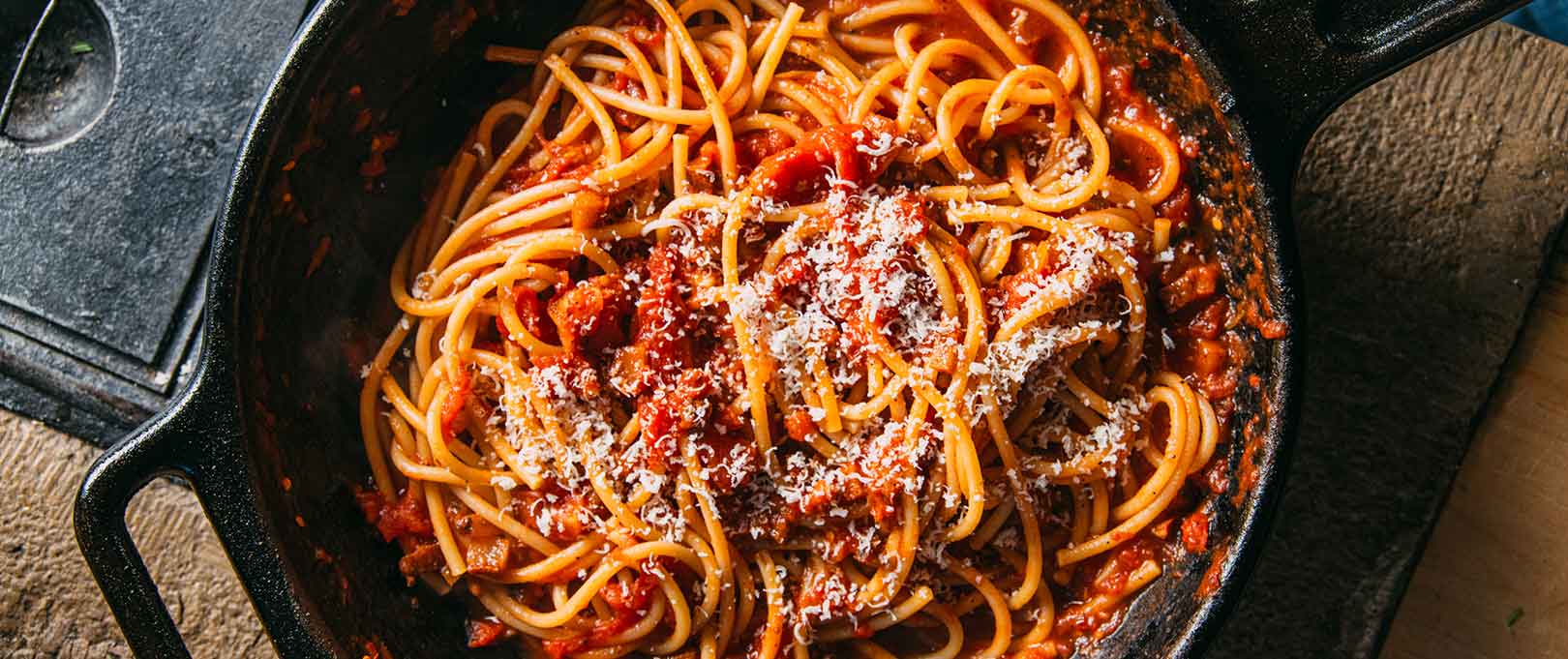 This classic red sauce is a traditional Italian pasta sauce with six ingredients. Quality ingredients really shine in this simple, but flavorful sauce. Finishing the partially-cooked pasta in the sauce ensures a good cling for the pasta and a flavorful finished dish.