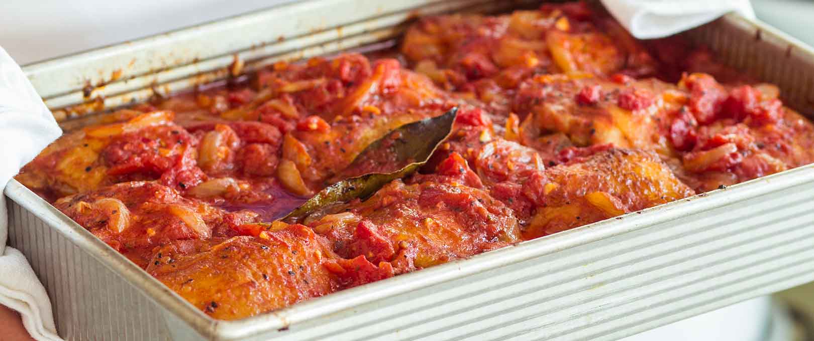 Our savory version of Chicken Cacciatore uses legs and thighs and a bit of tomato for roasted goodness.