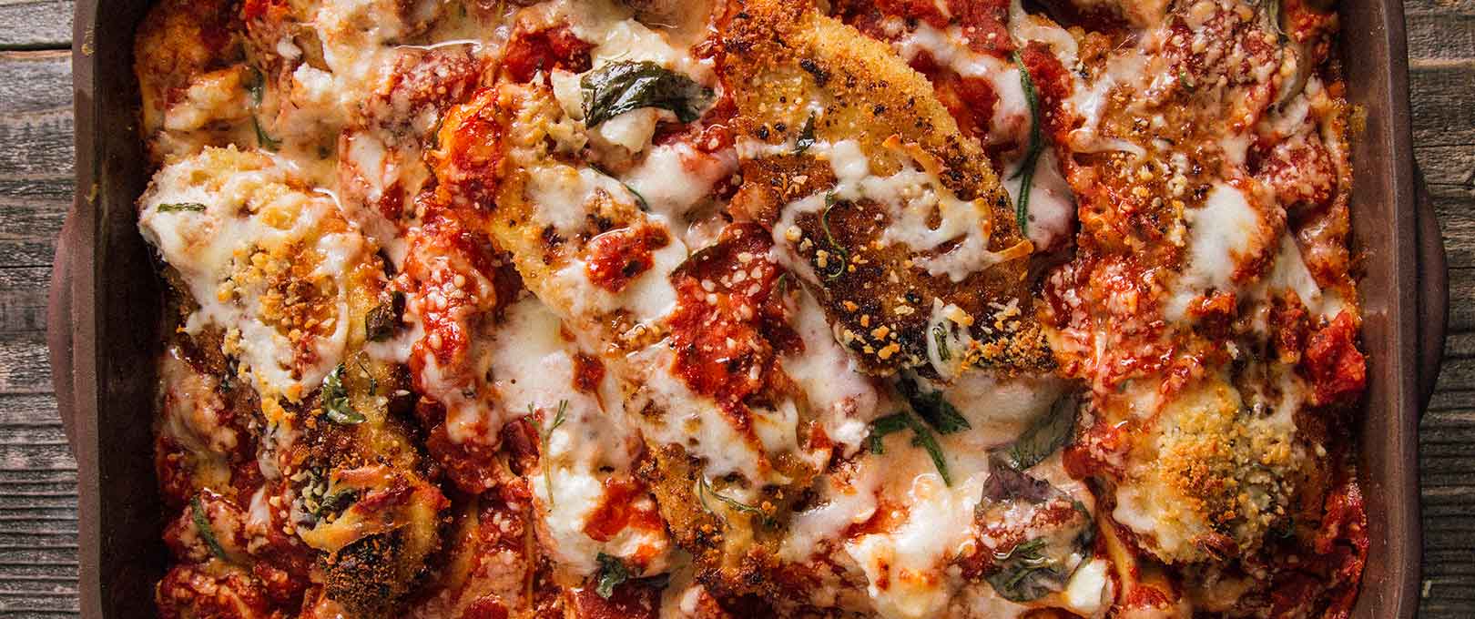 Two classic Italian favorites in one yummy dish! Add chicken that has been breaded and browned to crispy perfection to our all-in-one lasagna recipe for a flavorful baked Chicken Parmesan with a twist.