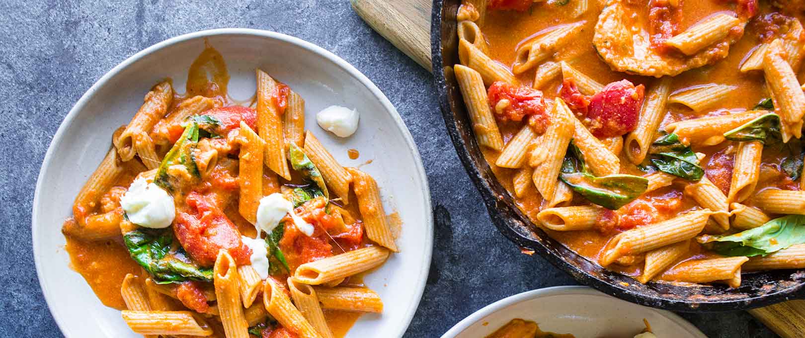The flavors of classic tomato caprese in a creamy and cheesy pasta dish Pasta is cooked in tomatoes, garlic, fresh basil and balsamic vinegar for infused flavor. Fresh mozzarella and cream make this Italian comfort dish extra creamy.