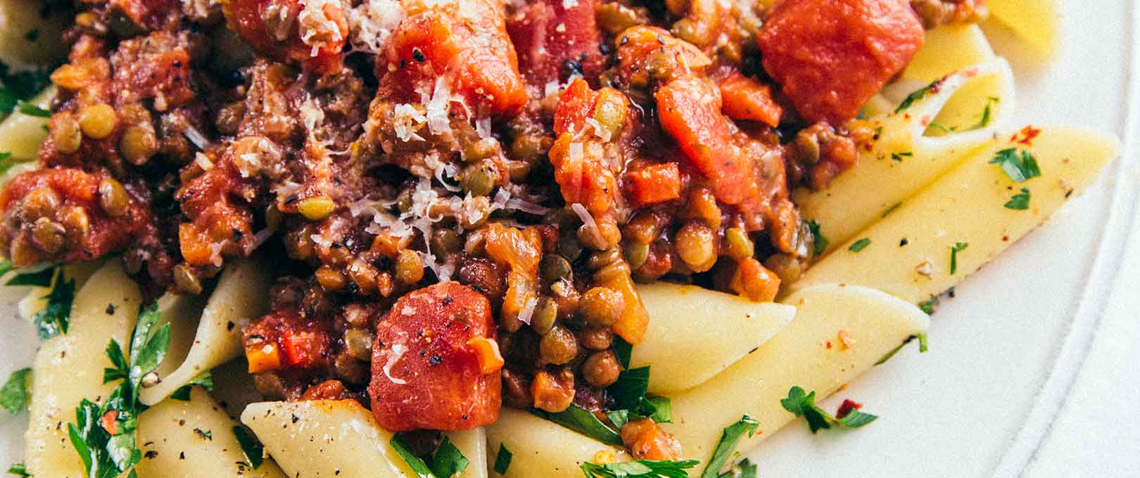 This bolognese is so delicious you won’t miss the meat. A meatless version perfect for vegetarians and simple to make. Saute onions with a few vegetables, pour in tomatoes and tomato sauce along with seasoning, simmer and enjoy!