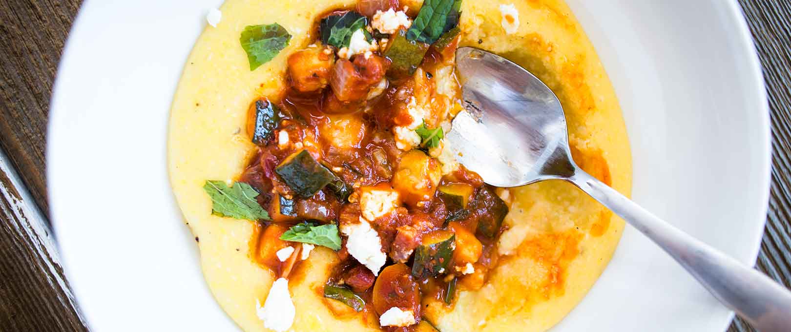 Polenta is the perfect side, thanks to its unique texture and golden color. This recipe focuses on the rich flavors of the tomatoes themselves, which pair quite naturally with polenta.